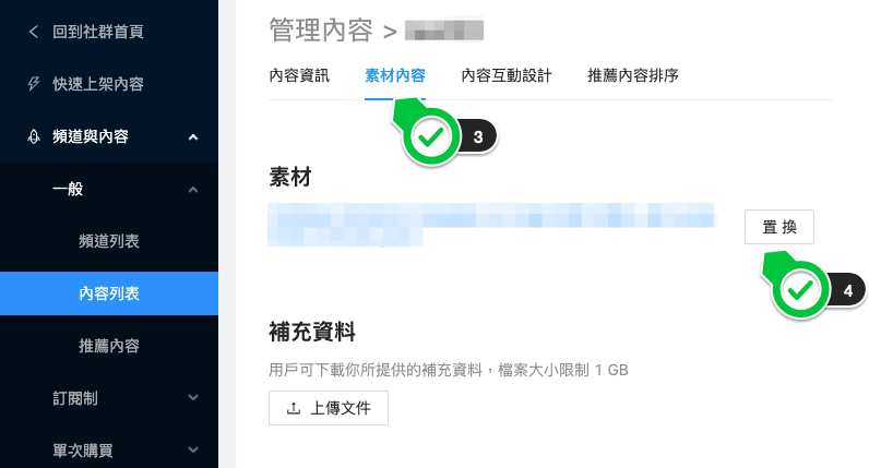 已經上架的內容,有需要修改,例如影片字幕、特效、音軌等,除了重新編輯、上傳外,也可以使用置換素材的功能。這篇簡單介紹操作方法。